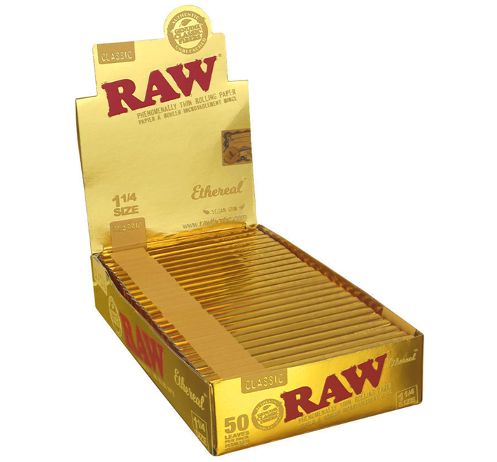 The RAW Ethereal 1 1/4 Rolling Papers combines elegance with RAW’s signature quality for a refined smoking experience. These Ethereal papers are crafted from vegan, unbleached plant fibers and finished with the acacia gumline, which offers the most original and natural smoking session. Each paper is designed phenomenally thin and watermarked with RAW’s criss-cross steam imprint to prevent runs and maintain a smooth, even burn.